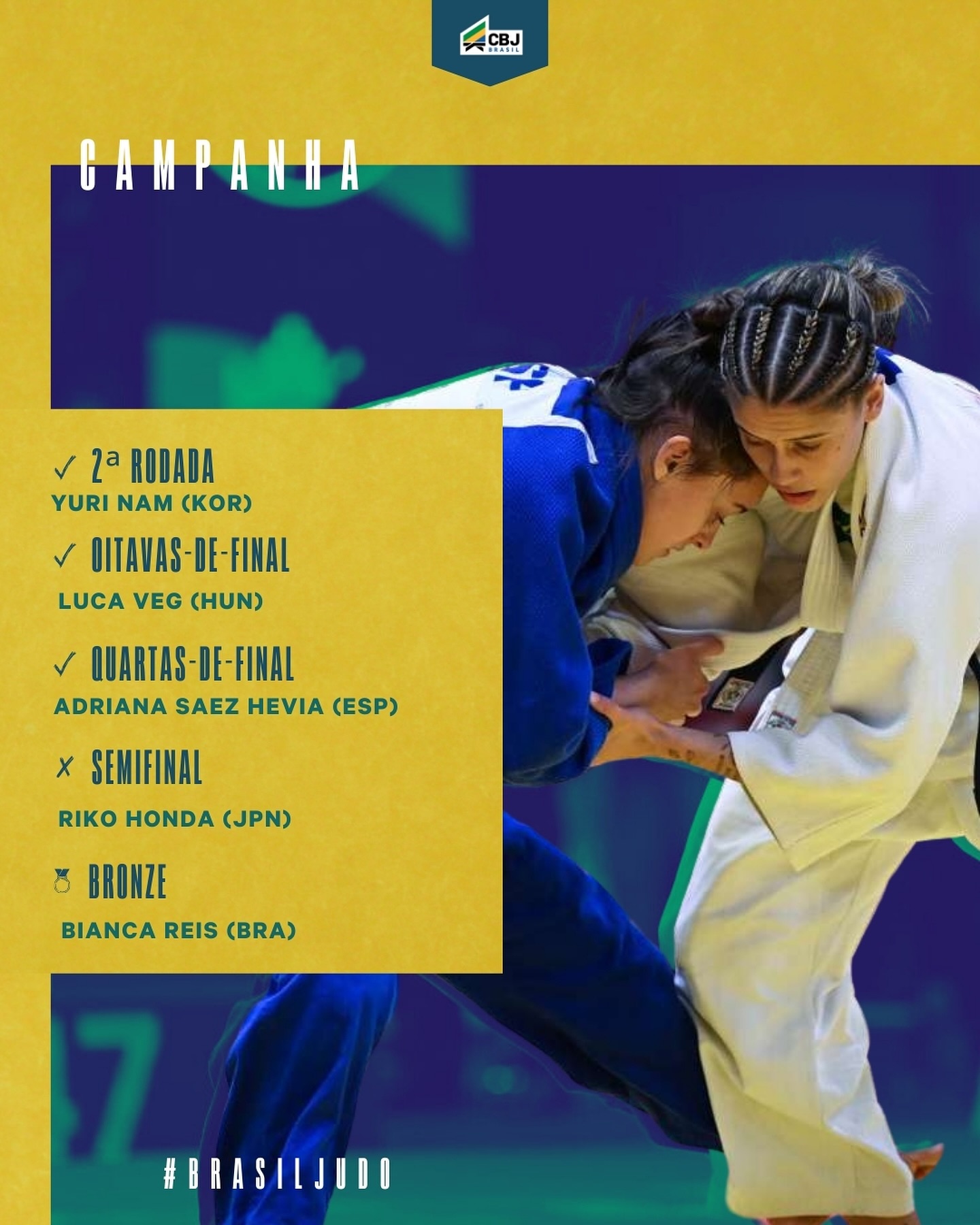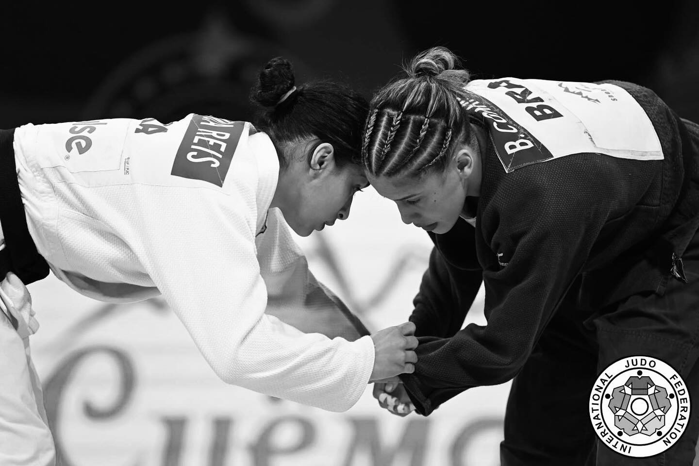 A brasileira fez ótima campanha nas preliminares, com três vitórias, e na luta do bronze parou no waza-ari da compatriota Bianca Reis