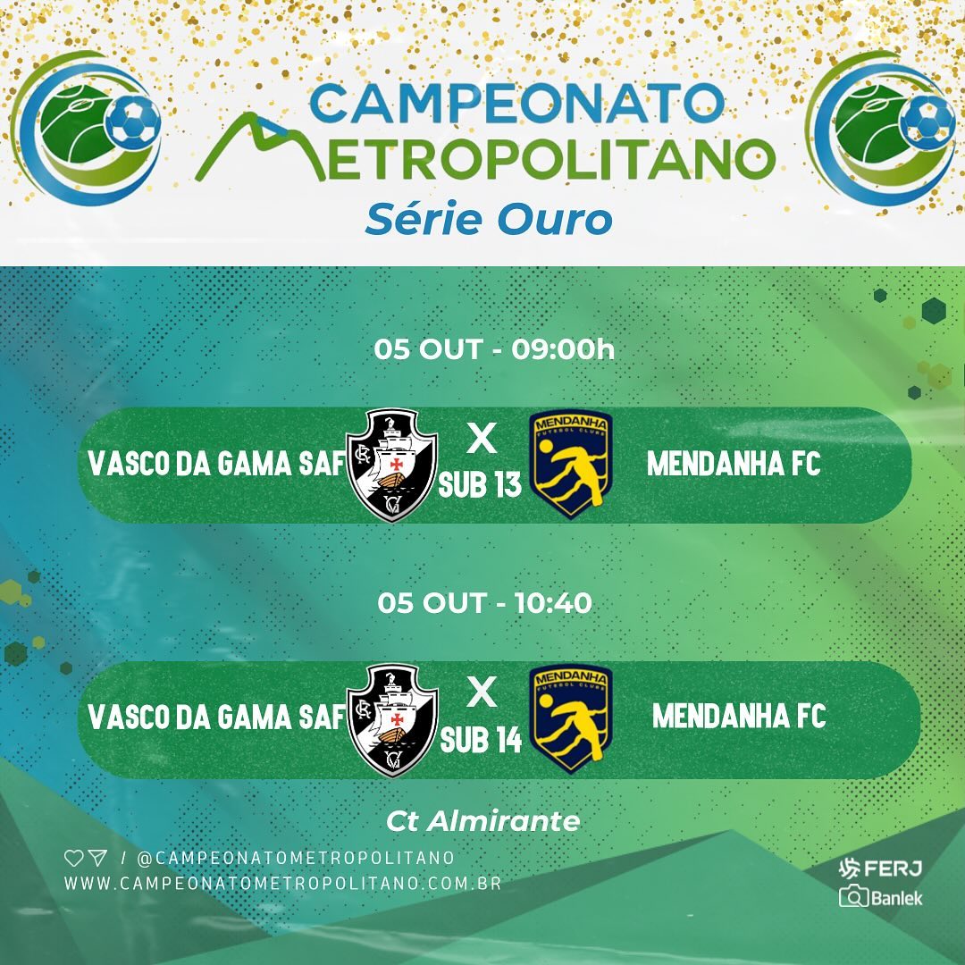 Pela Taça Rio, Vasco enfrenta o Mendanha no Sub-13 e no Sub-14 neste sábado