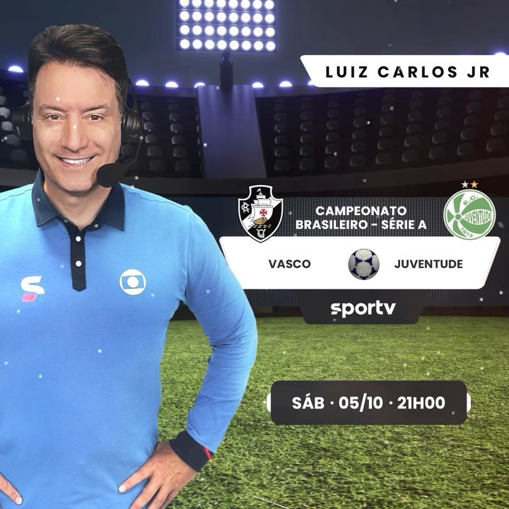 Na faixa nobre do ‘Super Brasileirão de Sábado' no sportv, o Vasco recebe o Juventude, a partir das 21h, com disponibilidade de sinal 4K. A narração é de Luiz Carlos Jr., com os comentários de Eric Faria e Grafite. O trio já estará ao vivo, em São Januário, uma hora antes de a bola rolar, no ‘Aquecimento sportv', trazendo as últimas novidades e escalações das duas equipes. No Premiere serão três jogos exibidos com exclusividade neste sábado, todos às 19h: Bahia x Flamengo; Corinthians x Internacional; e Cuiabá x São Paulo.