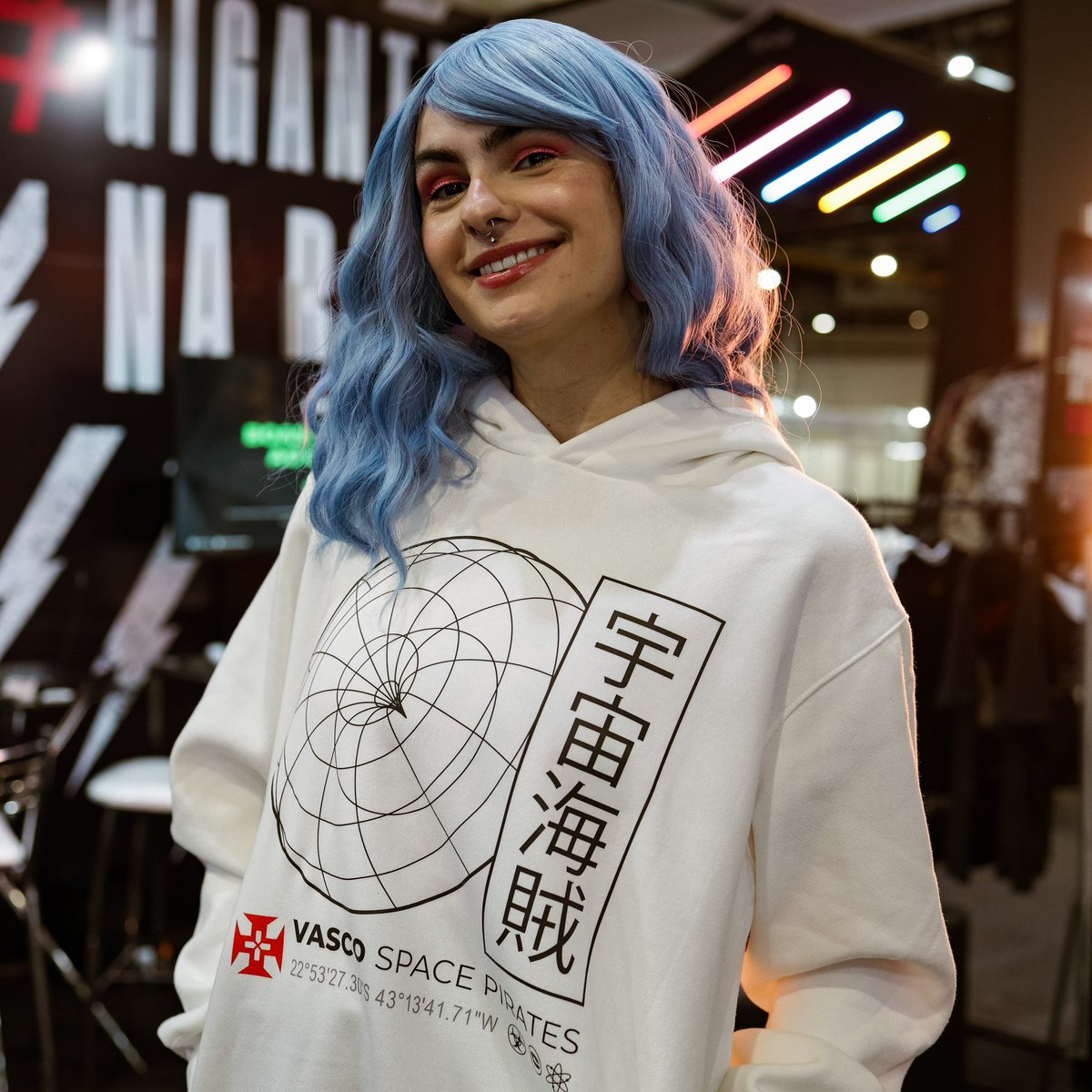 Quem vai na BGS, temos um Stand só nosso com alguns produtos do Vasco eSports, incluindo os uniformes que usamos em competições(branco e preto)
