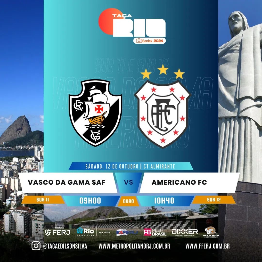 Vasco recebe o Americano no Sub-11 e no Sub-12 e o Barcelona no Sub-09 e no Sub-10 neste sábado pela Taça Rio