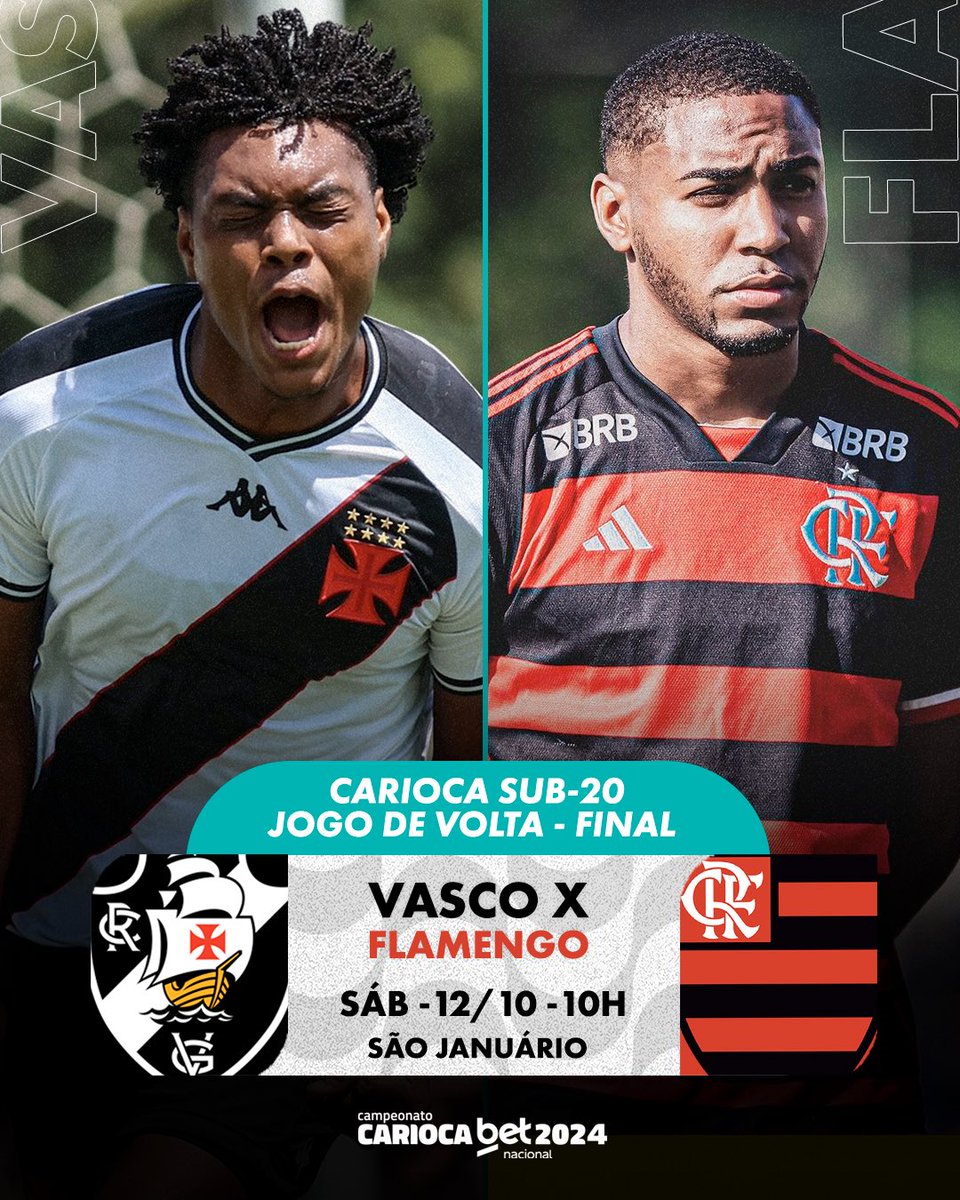 Amanhã é dia do segundo jogo entre @VascodaGama x @Flamengo pela FINAL do Carioca Sub-20! Na partida de ida, vitória do Vasco por 2x1.
