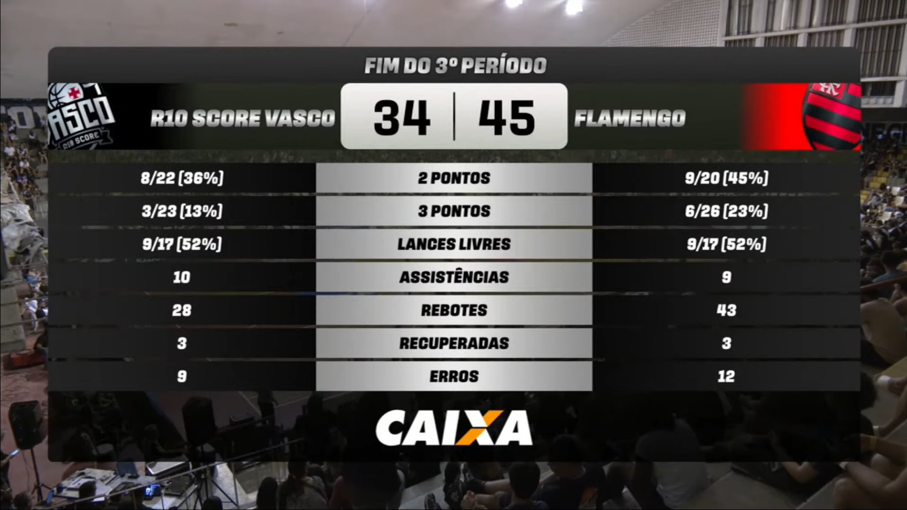 12/10/24 - Basquete: Fim do 2º quarto; Vasco vai perdendo para o Urubu por 25 a 22