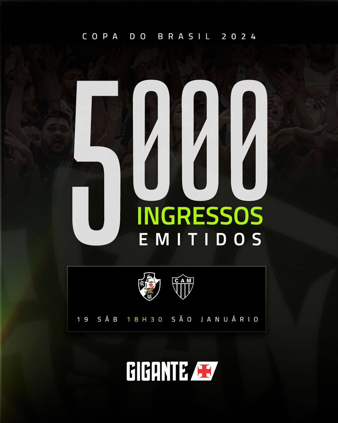 Já foram emitidos 5 mil ingressos para Vasco x Atlético-MG