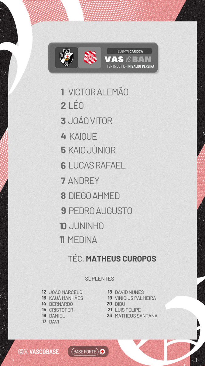 14/09/24 - Sub-20: Confira a escalação do Vasco para o jogo contra o Bangu