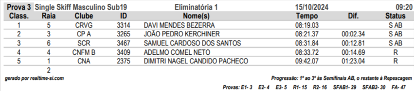 Os vascaínos disputaram 3 provas nesta 3ª-feira no Brasileiro de Remo Unificado, que está sendo disputado em São Paulo. Na 1ª prova do dia, Maria Eduarda ficou em 3º lugar e foi para a repescagem do Single Skiff Feminino Sub-19. À tarde, a atleta vascaína venceu a repescagem e garantiu classificação para a final. Davi Mendes venceu sua prova e se classificou para a semifinal do Single Skiff Masculino Sub-19.