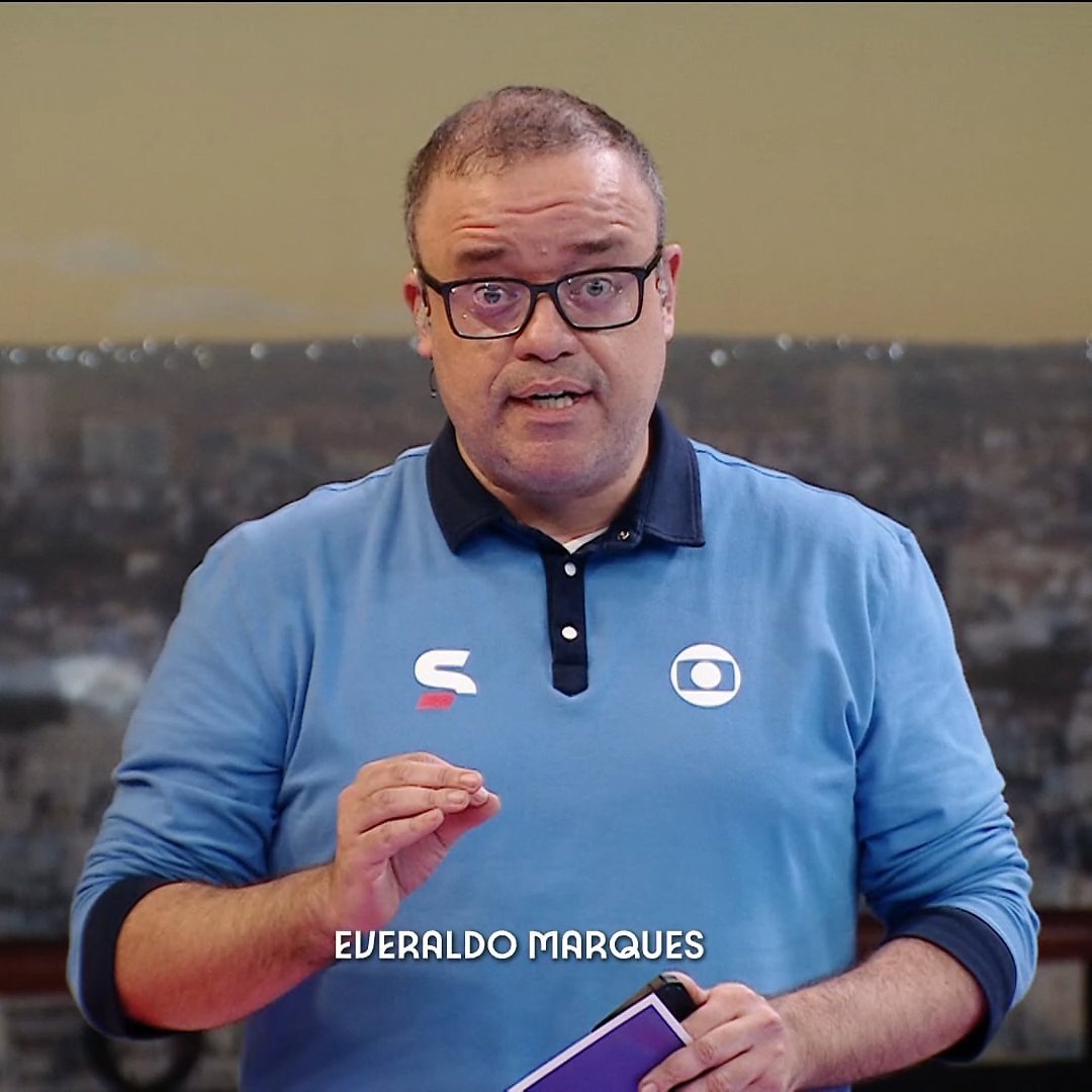 Narração de Everaldo Marques com os comentários de Caio Ribeiro e Roger Flores.
