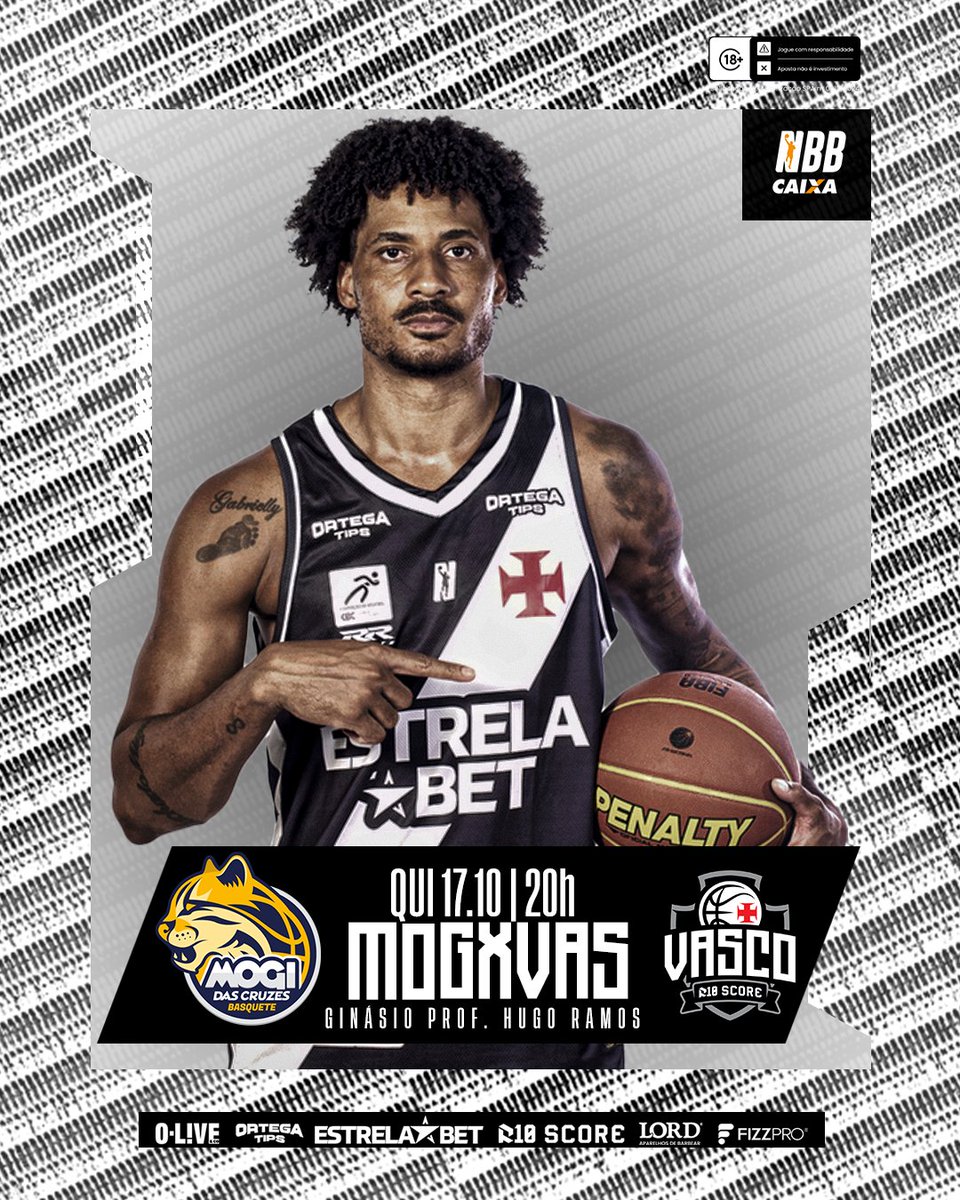 🏀Não para, não! A próxima batalha do R10 Score Vasco da Gama será na quinta, 17/10, às 20h, contra o Mogi no Ginásio Professor Hugo Ramos.