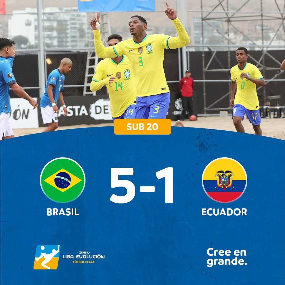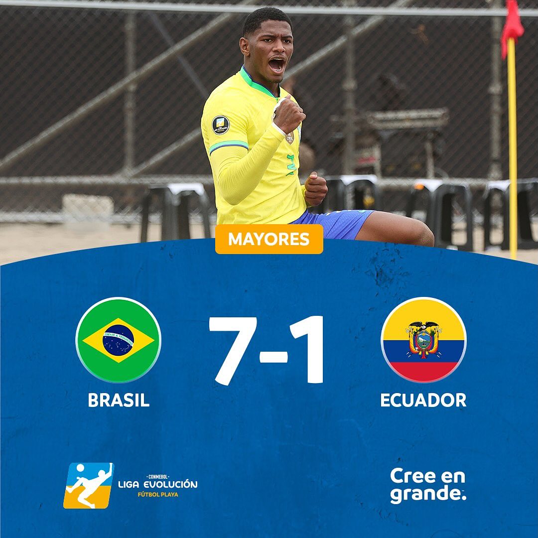 O Brasil derrotou o Equador por 7 a 1, no duelo entre as seleções principais, válido pela 2ª rodada do grupo Zona Norte da Conmebol Liga Evolución 2014. Mais um show dos nossos craques nas areias de Lima, capital do Peru. 👏👏👏👏