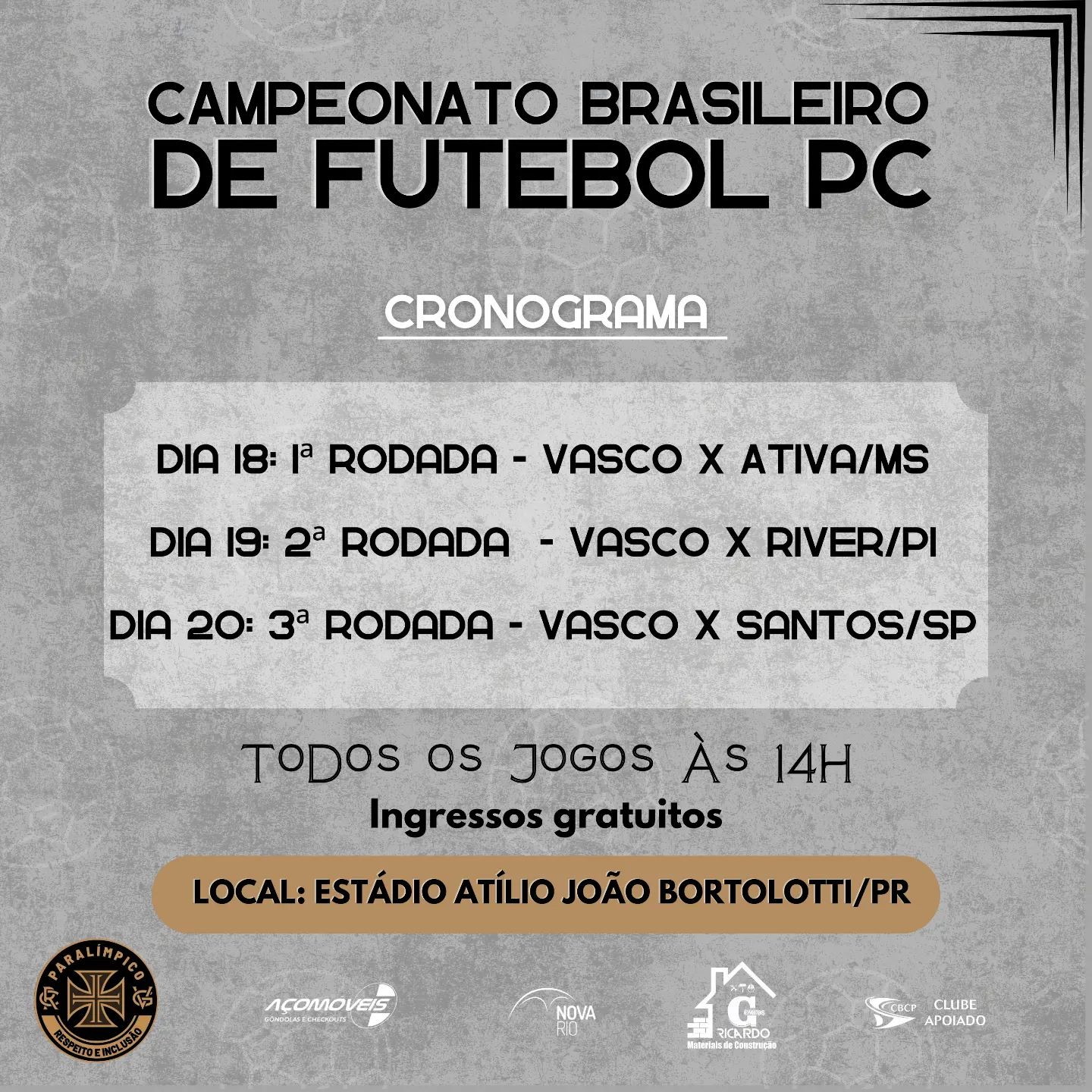As primeiras fases ocorrerão nos dias 18, 19 e 20 de outubro no Estádio Municipal Atilio João Bortolotti, com ingressos gratuitos!