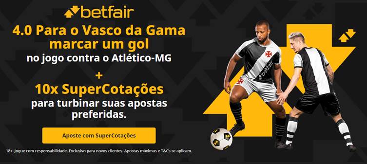 Betfair tem oferta de odd 4.0 para o Vasco marcar contra o Atlético-MG e aposta grátis neste fim de semana; confira
