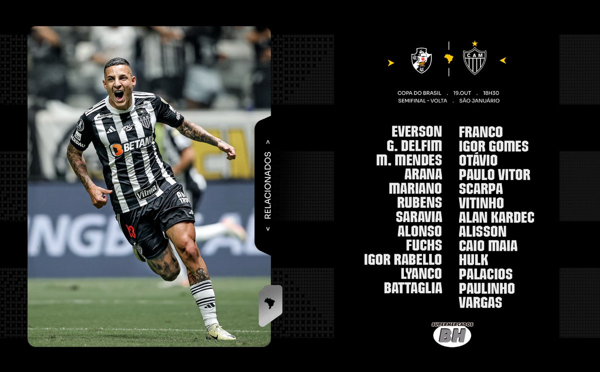 📋 Veja a lista de atletas relacionados para a partida diante do Vasco, em São Januário, pelo duelo de volta da semifinal da Copa Betano do Brasil!
