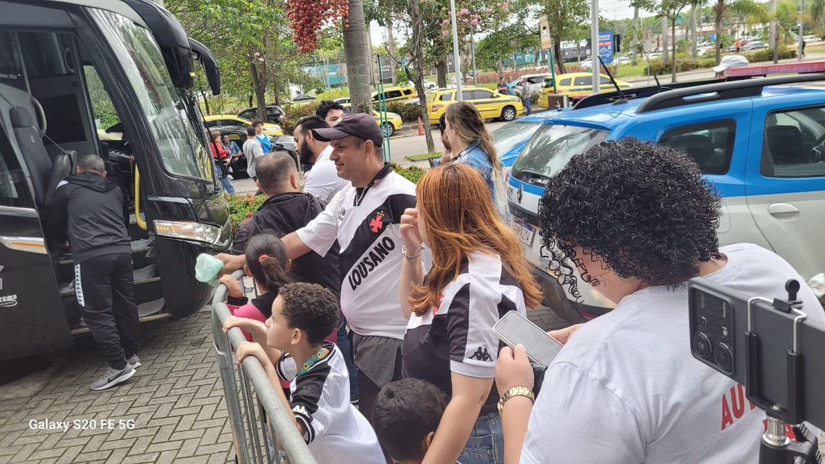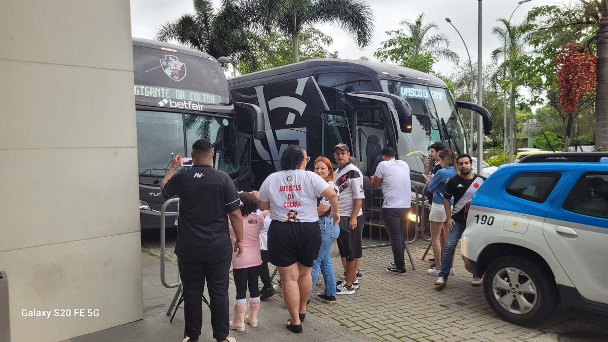 Torcedores começam a chegar ao hotel onde a equipe está concentrada, na expetativa de apoiar o time antes da partida.