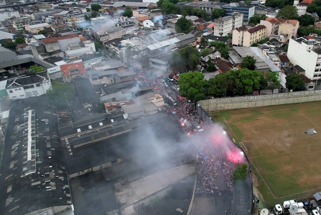 Torcedores fazem 'rua de fogo' para receber o ônibus do Vasco