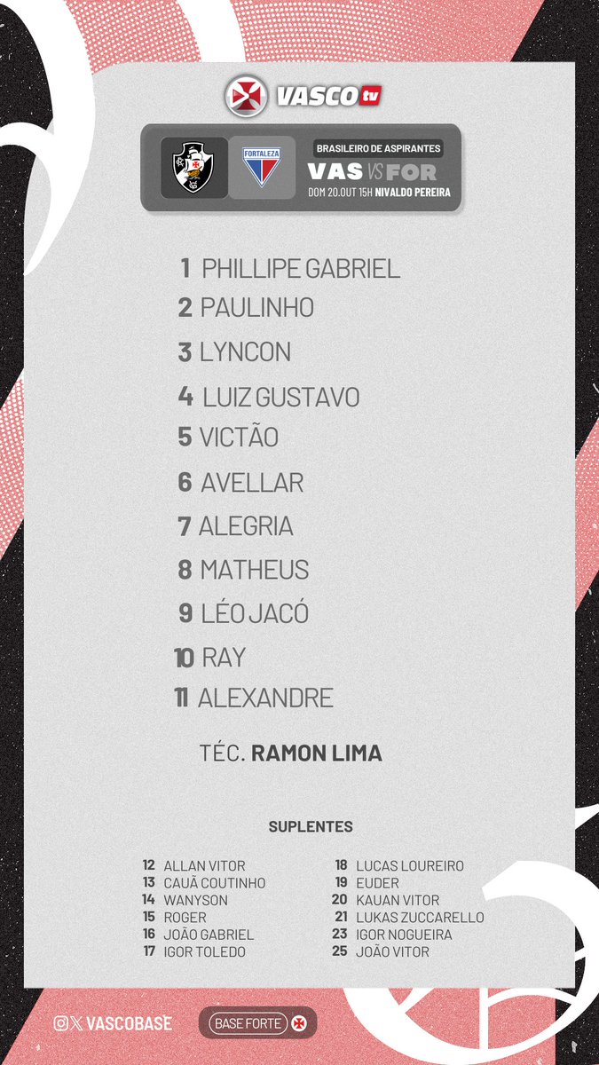 Vasco escalado para o confronto contra o Fortaleza pelo Brasileiro de Aspirantes. Assista na VascoTV.