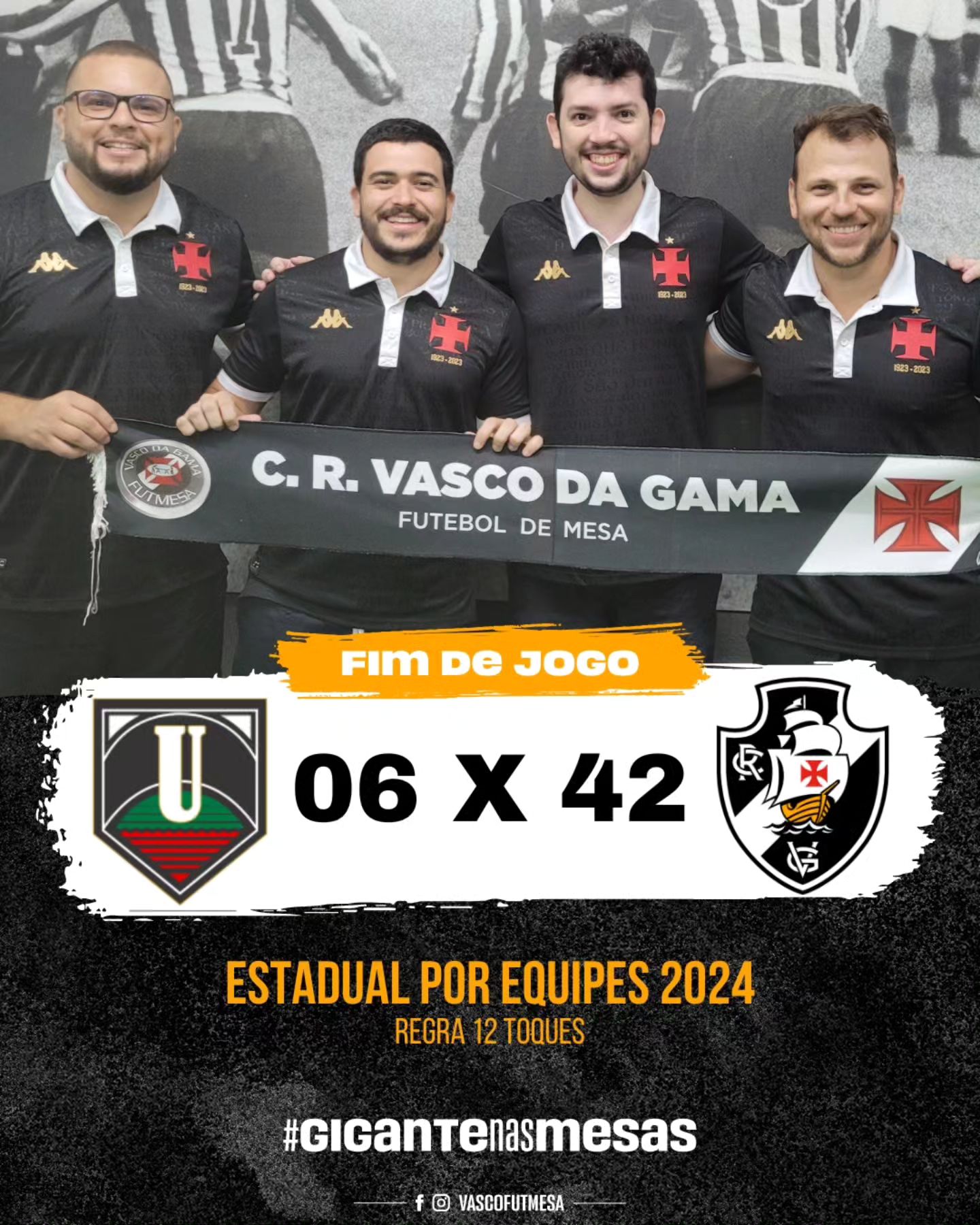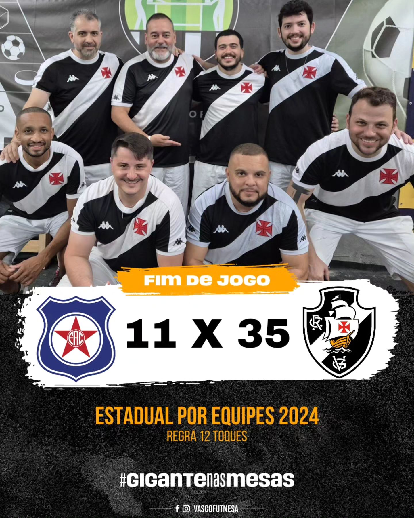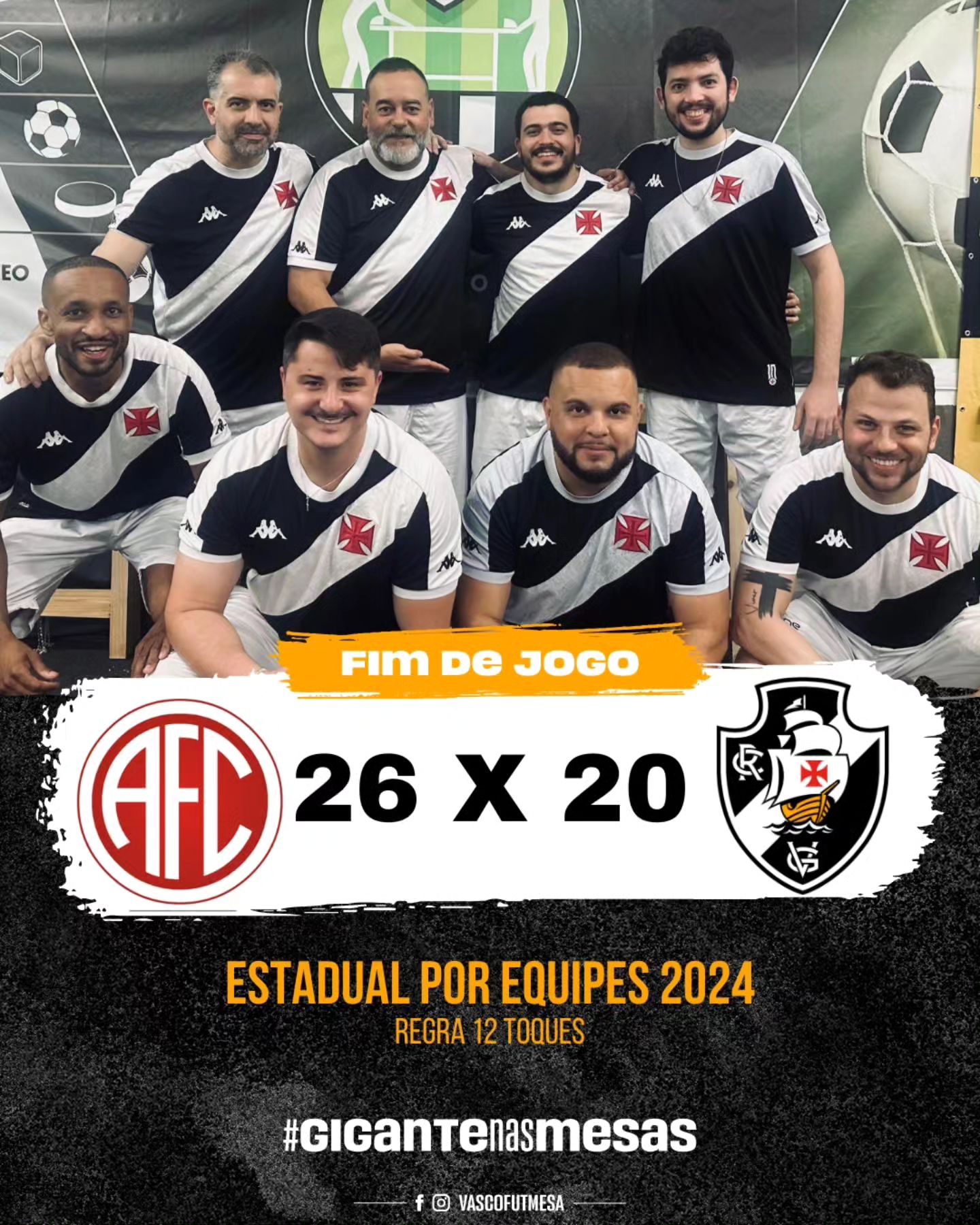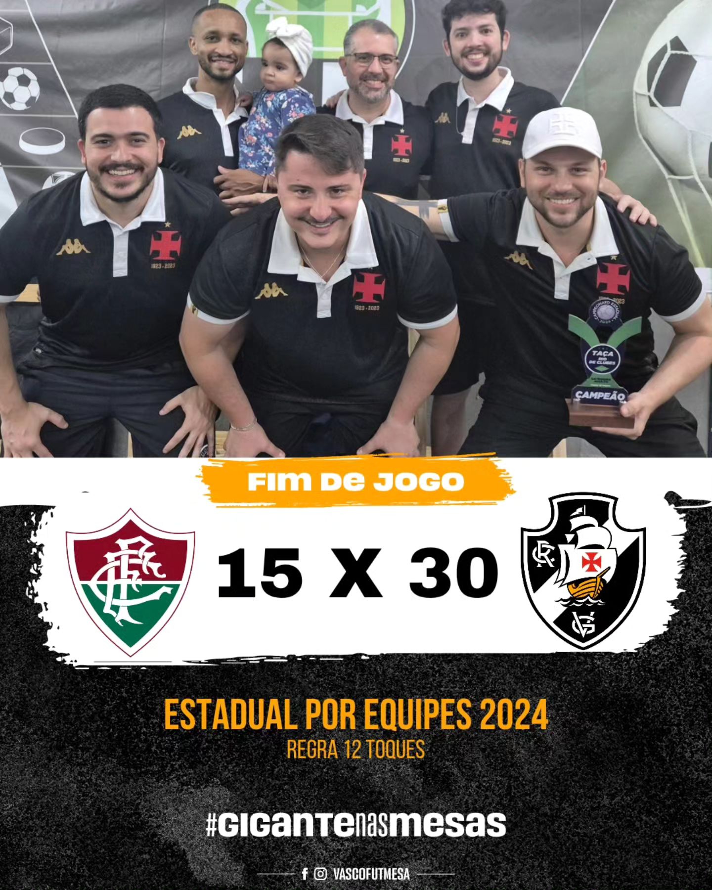 A equipe de Futebol de Mesa vascaína venceu o Fluminense por 30 a 15 e conquistou a Taça Rio Interclubes - 2º Turno do Campeonato Estadual.💪💢