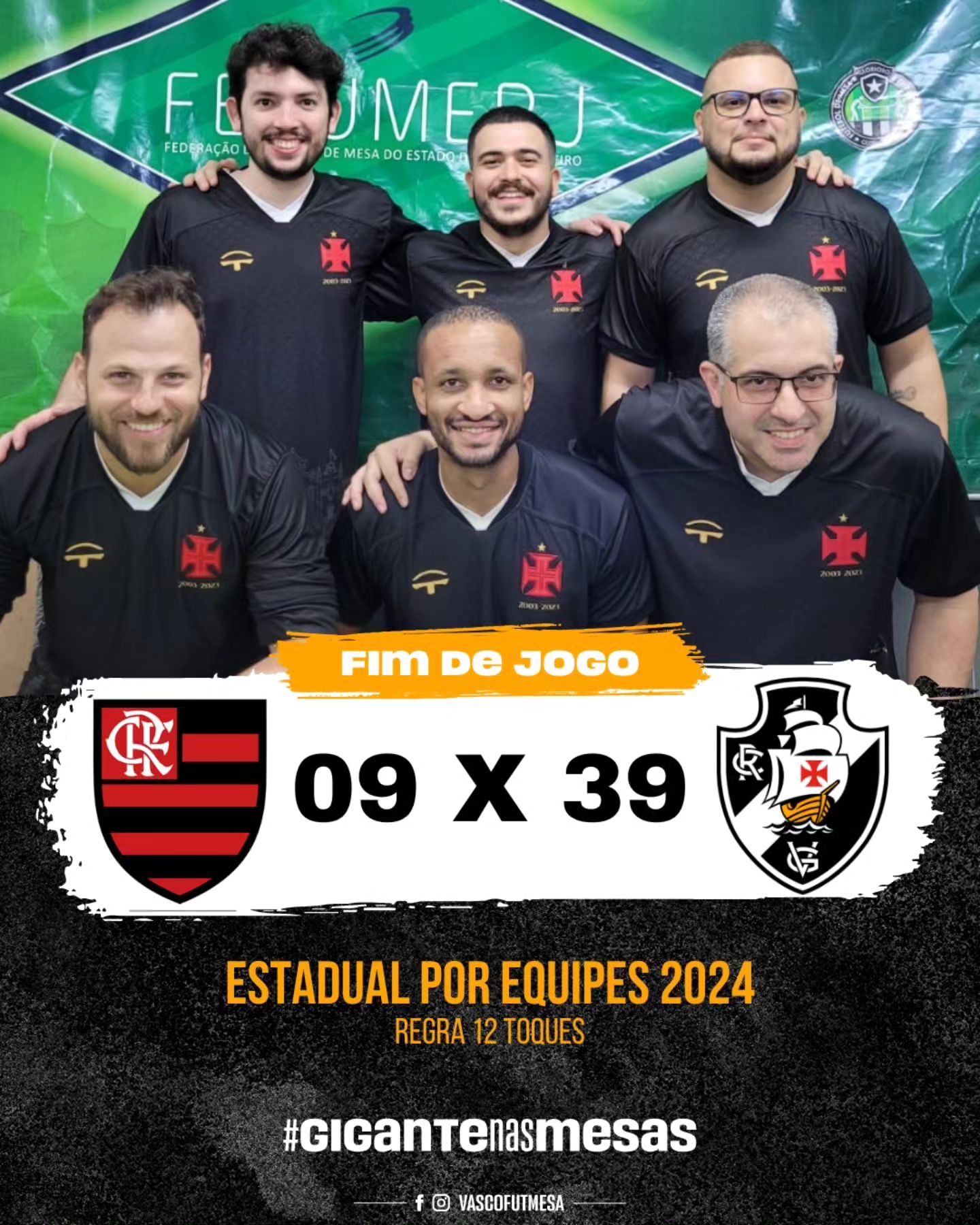 Pelo Campeonato Estadual Interclubes de Futebol de Mesa, Regra 12 toques, o Vasco venceu neste sábado (19/10), o Flamengo por 39 a 9.