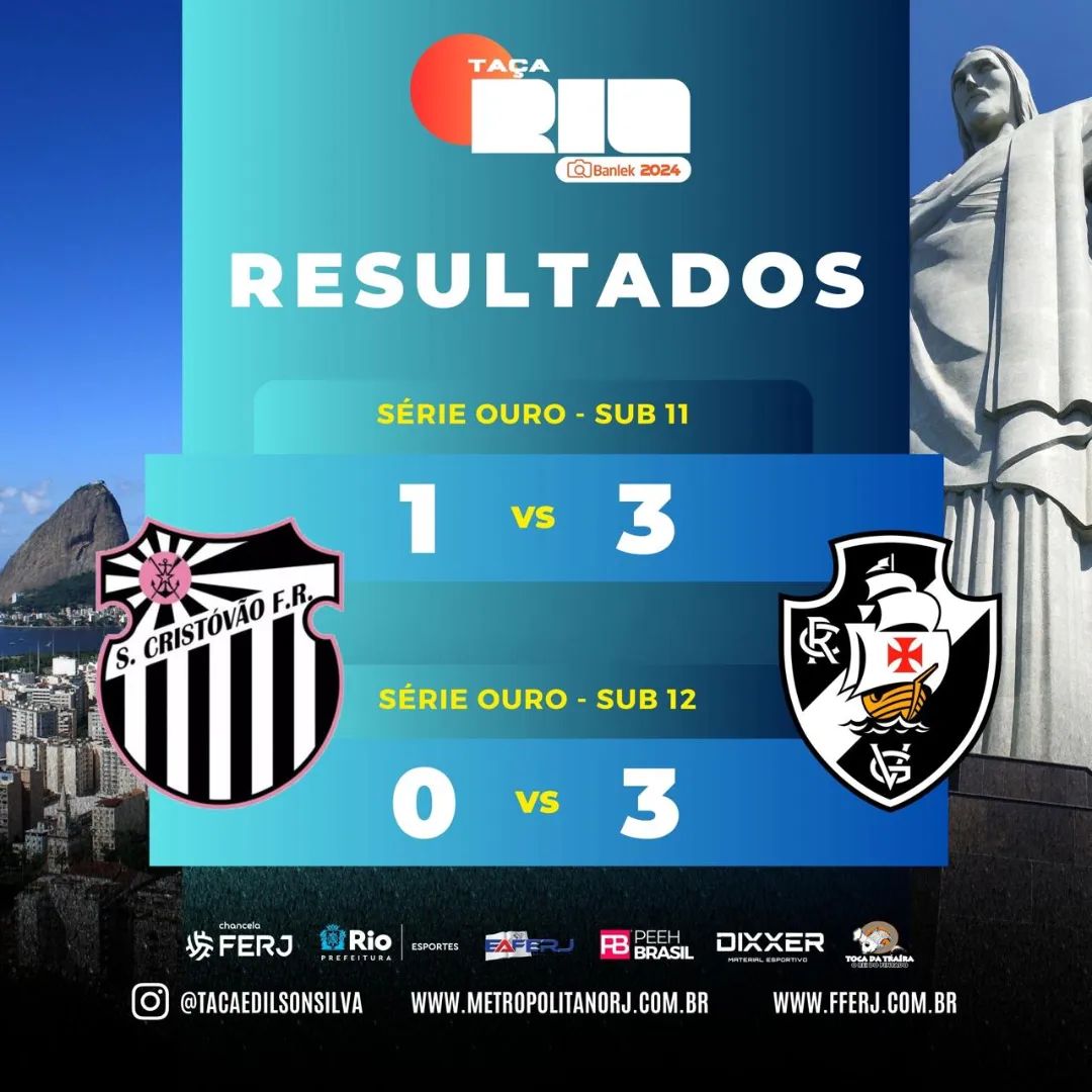 ◤✠◢ Pela 10ª Rodada da Taça Rio Sub-11 realizada neste sábado (19/10/2024), o Vasco venceu o São Cristóvão pelo placar de 3 x 1.