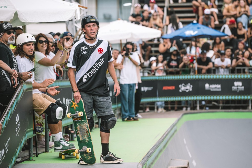 Bicampeão olímpico de skate compete usando a camisa do Vasco no STU Pro Tou Rio