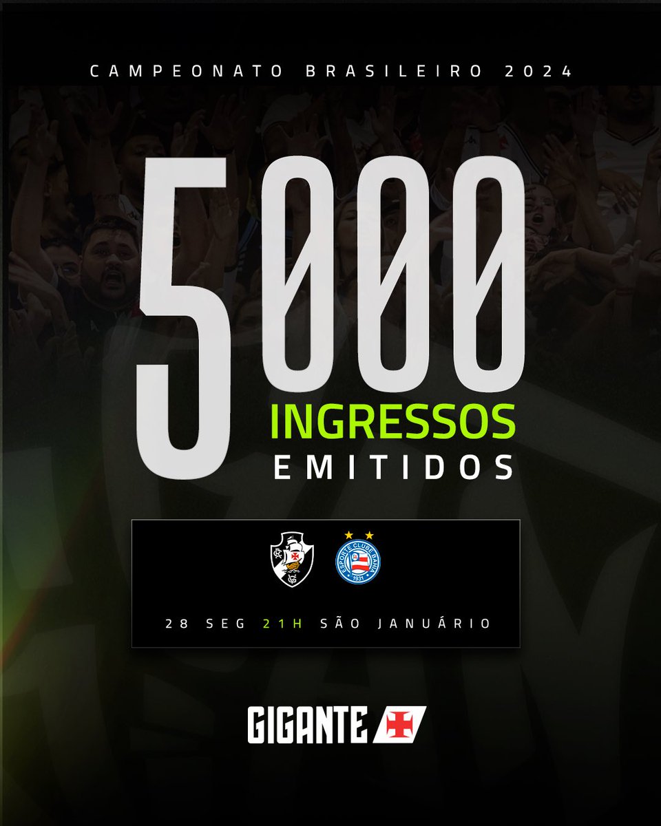 Já foram emitidos 5 mil ingressos para Vasco x Bahia
