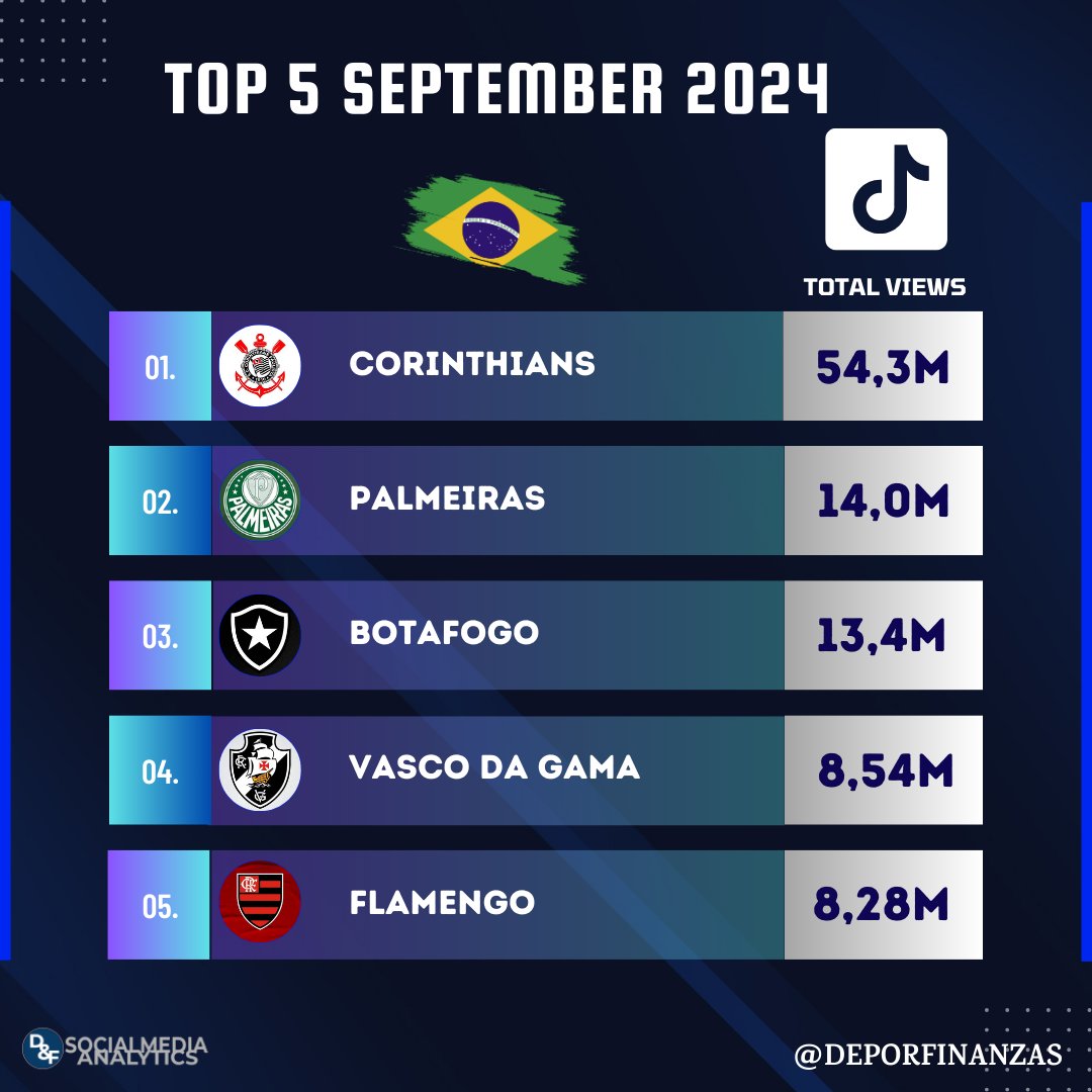 📲⚽🇧🇷 Os 5 clubes brasileiros com mais visualizações no #TikTok durante setembro 2024!🎶