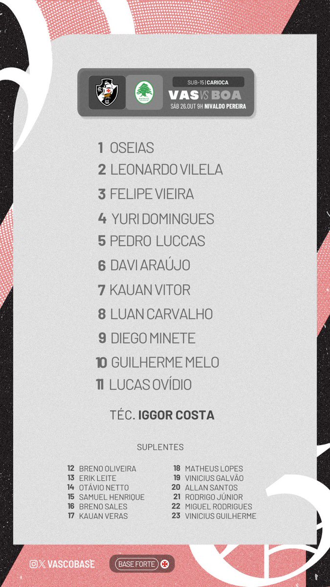 Fonte: X oficial Vasco Base