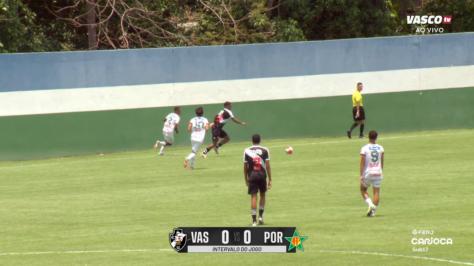 Intervalo no Nivaldo Pereira; Vasco vai empatando com a Portuguesa por 0 a 0 no jogo de volta das quartas do Carioca Sub-17. Como o Vasco venceu o jogo de ida por 2 a 1, o resultado vai classificando o Gigante para a semifinal.