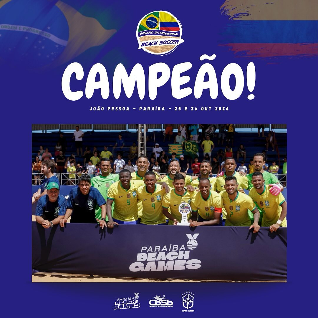 A seleção brasileira de beach soccer conquistou o título do Desafio Internacional contra a Colômbia, com duas vitórias em dois jogos, nesta sexta e sábado (25 e 26). Os duelos aconteceram na praia de Tambaú, em João Pessoa, como parte da programação do @paraibabeachgames