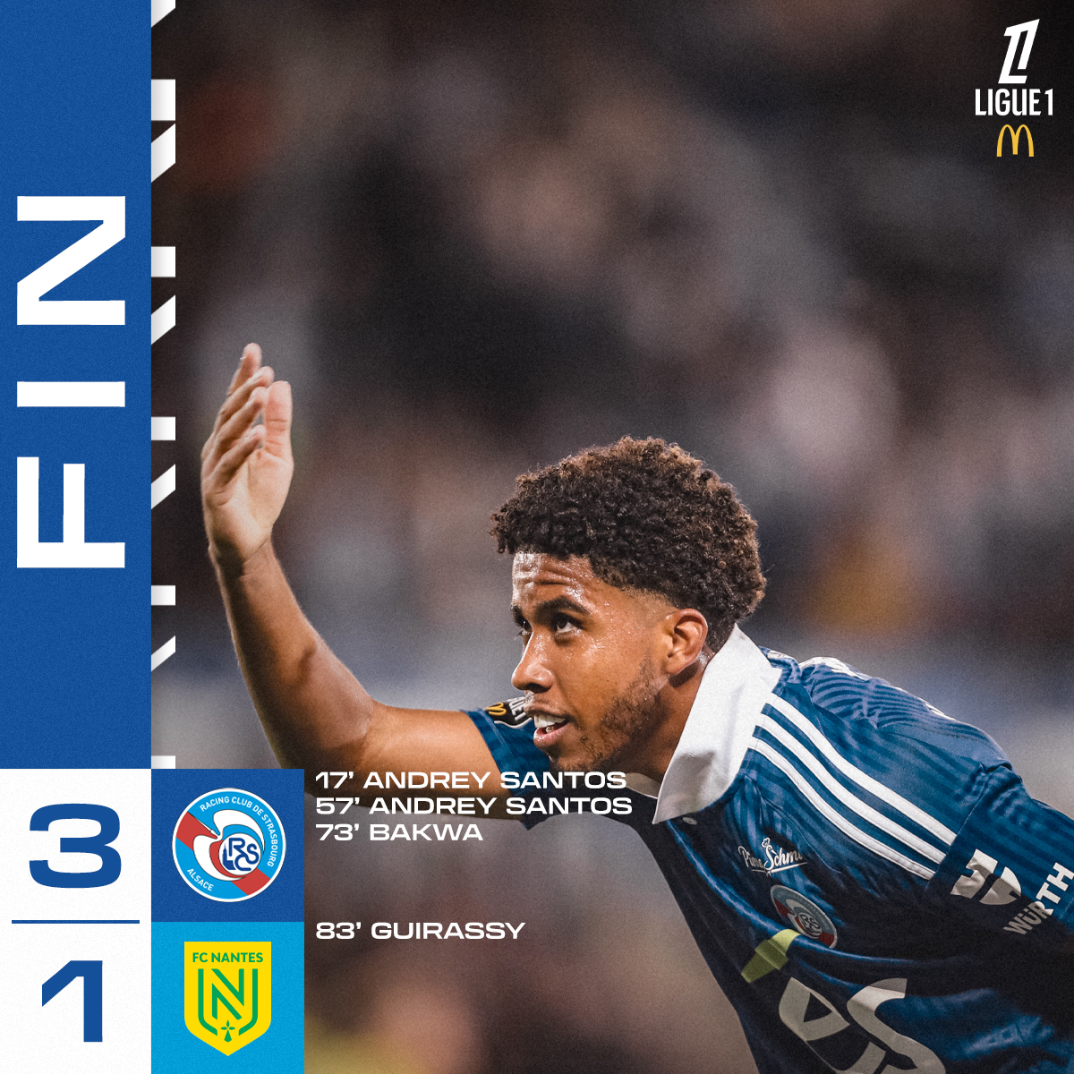 Andrey Santos marca 2 gols pelo Strasbourg contra o Nantes pelo Campeonato Francês