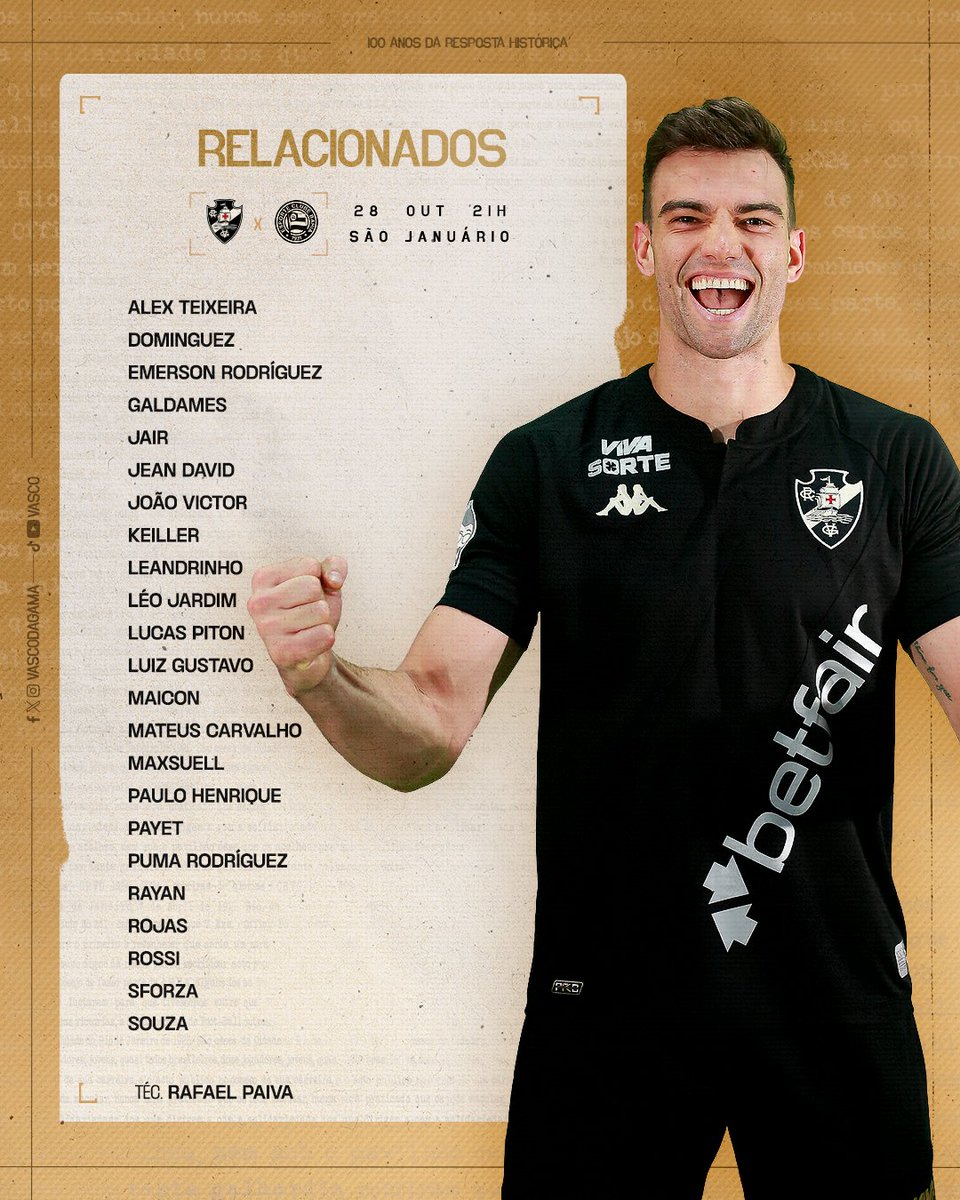📋 Relacionados para o confronto com o Bahia em São Januário! 🏟️💢