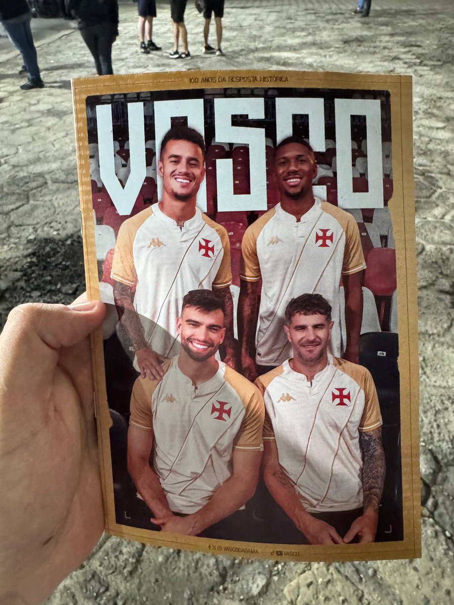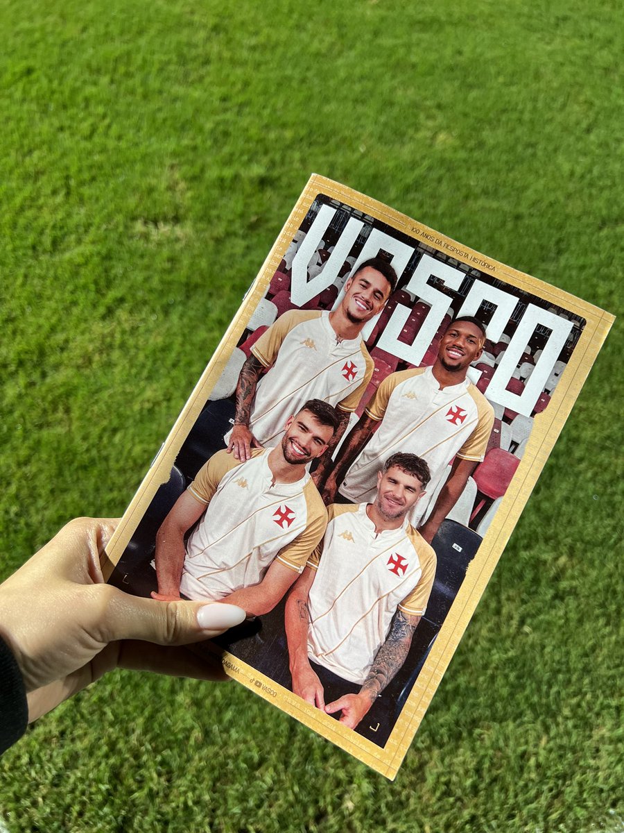 Exemplar da revista VASCO está sendo entregue aos torcedores no estádio.