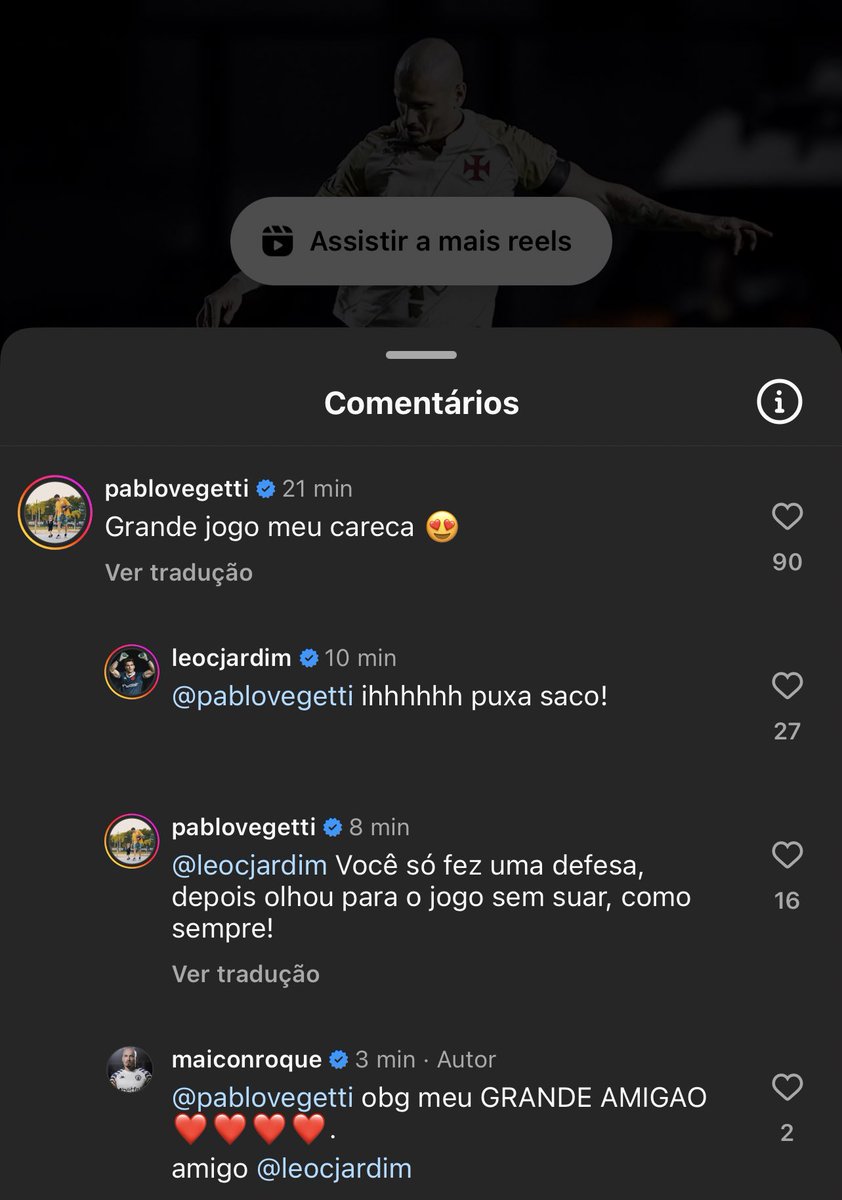 Maicon, Vegetti e Léo Jardim resenham no Instagram; veja
