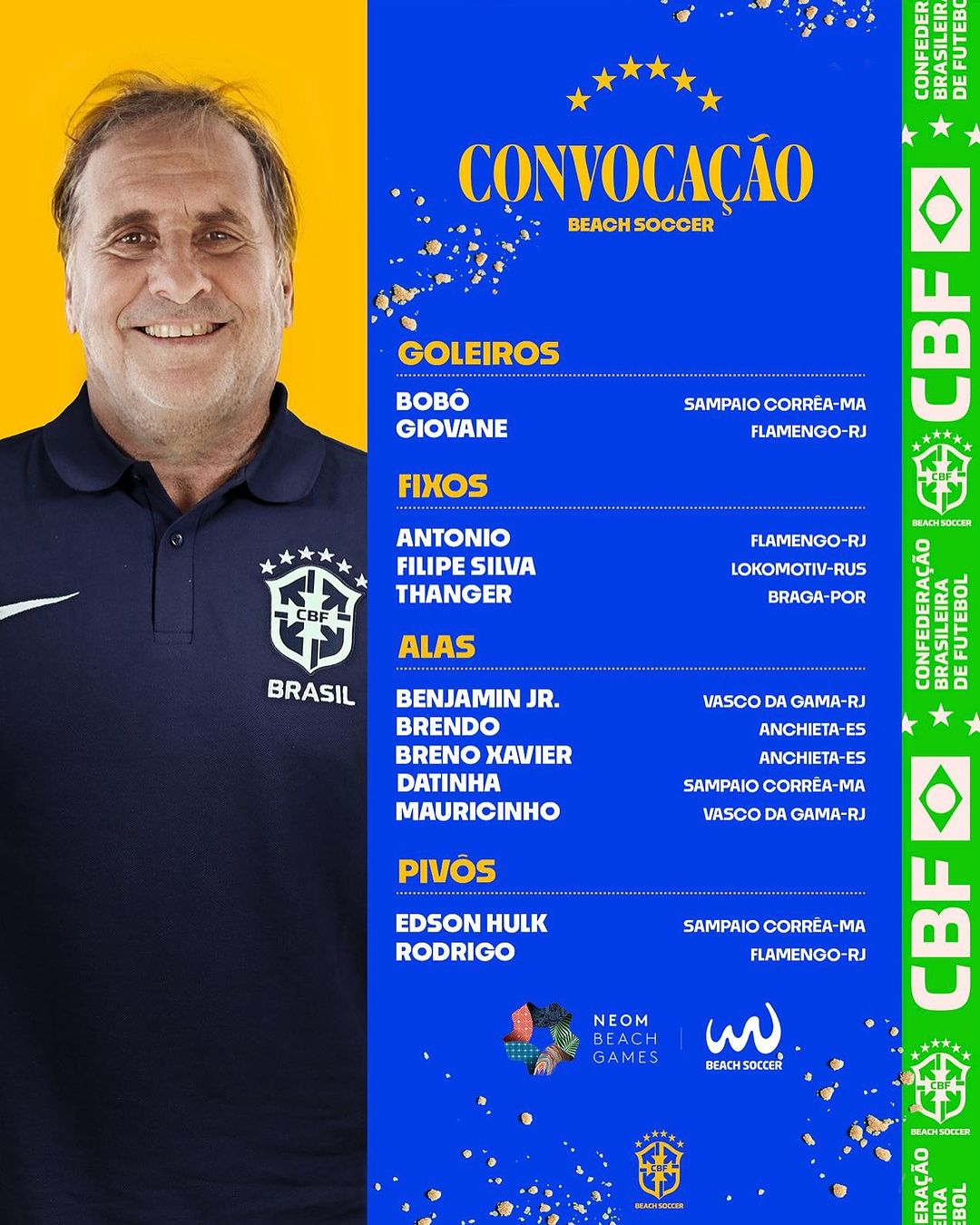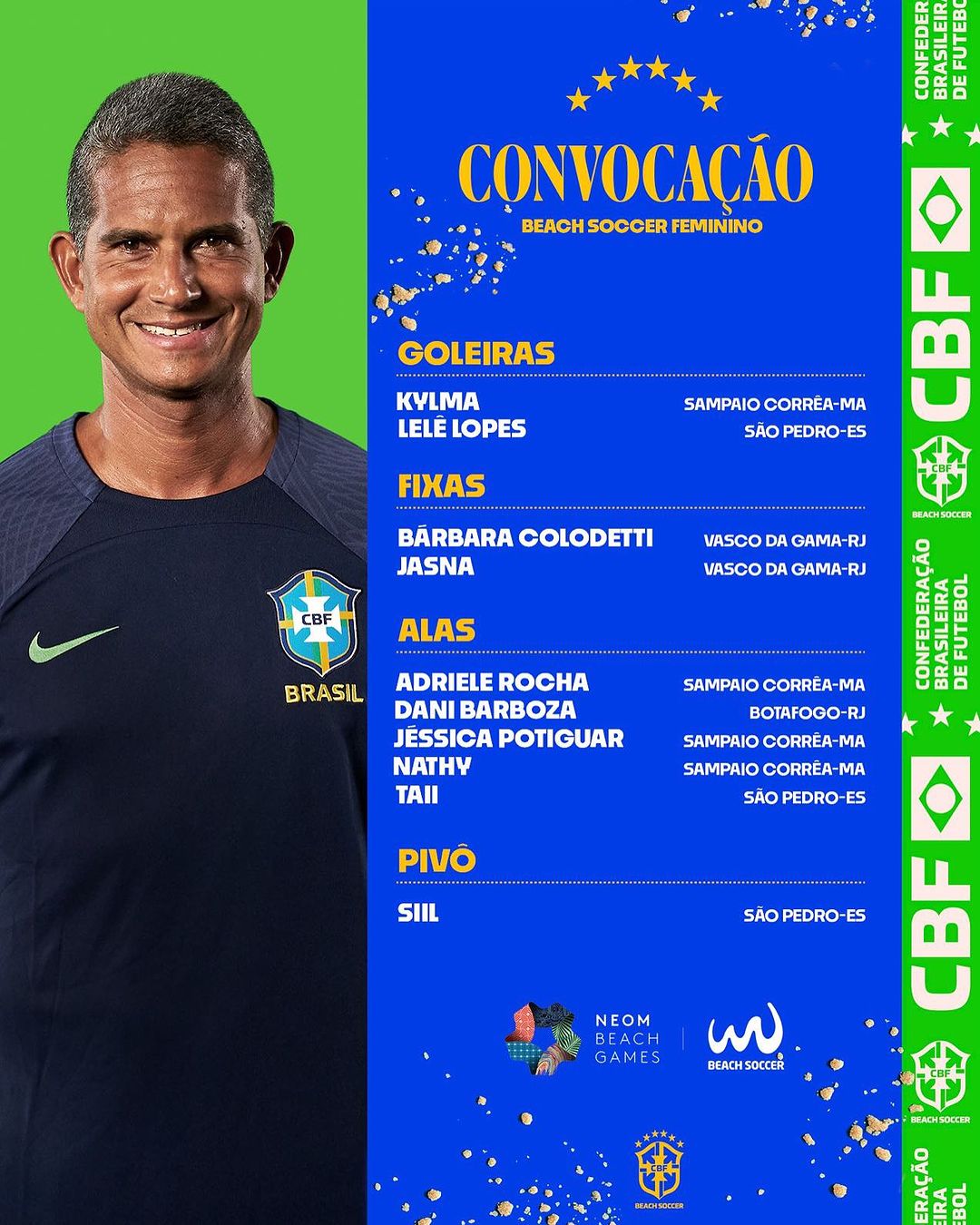 As seleções masculina e feminina do @brbeachsoccer foram convocadas para a disputa do NEOM Beach Games, evento de esportes de praia na cidade de Neom, na Arábia Saudita.