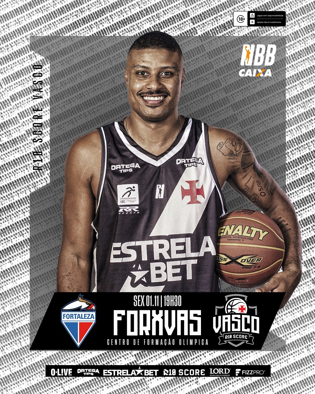Pra começar o próximo mês, o R10 Score Vasco da Gama enfrenta o Fortaleza nessa sexta-feira, dia 01/11, às 19h30, no Centro de Formação Olímpica, em Fortaleza, em mais um desafio. Vamos juntos empurrar o #GiganteDoBasquete rumo à vitória! 🏀