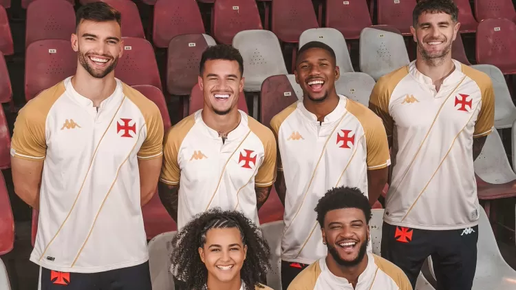 Na vitória por 3 a 2 sobre o Bahia na última segunda-feira (28), o Vasco estreou sua nova camisa 3. O manto nas cores bege e ocre tem como característica mais curiosa o fato de revelar trechos da famosa "Resposta Histórica" conforme os jogadores começam a suar em campo. O ousado projeto durou meses de teste até encontrar a tecnologia adequada e chegar ao formato final.