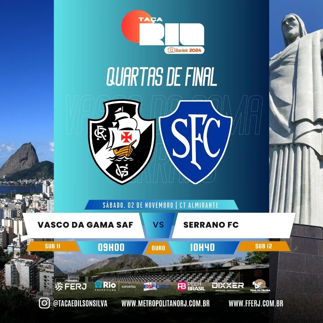 Vasco enfrenta o Serrano neste sábado pelas quartas de final da Taça Rio Sub-11 e Sub-12