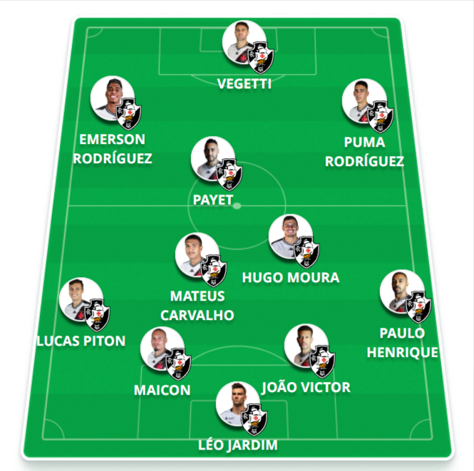 Provável escalação: Léo Jardim, Paulo Henrique, João Victor, Maicon (Léo), Lucas Piton, Mateus Carvalho, Hugo Moura, Payet, Emerson Rodríguez, Puma Rodríguez e Vegetti.