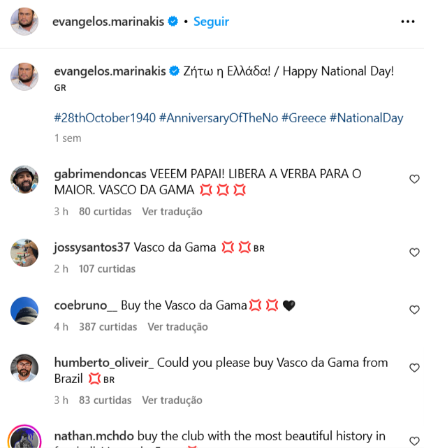 Especulado como interessado na Vasco SAF, Evangelos Marinakis tem redes sociais invadidas por vascaínos