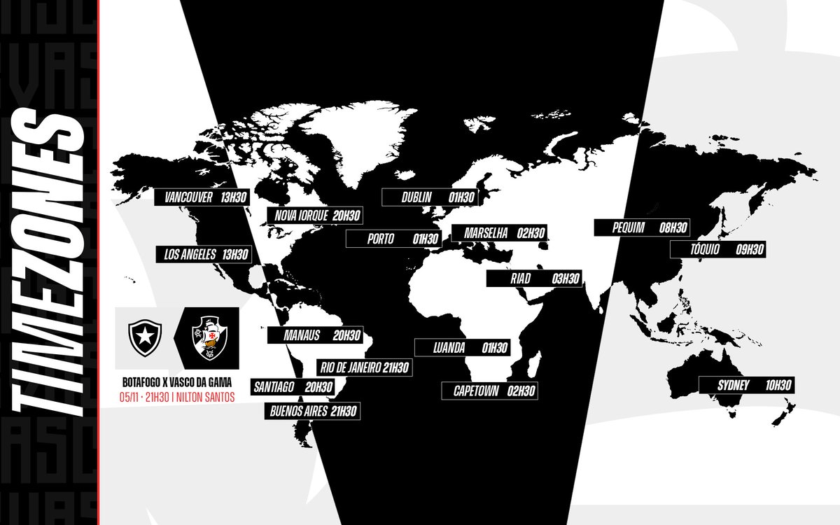 Vasco informa horário do jogo contra o Botafogo em várias partes do mundo