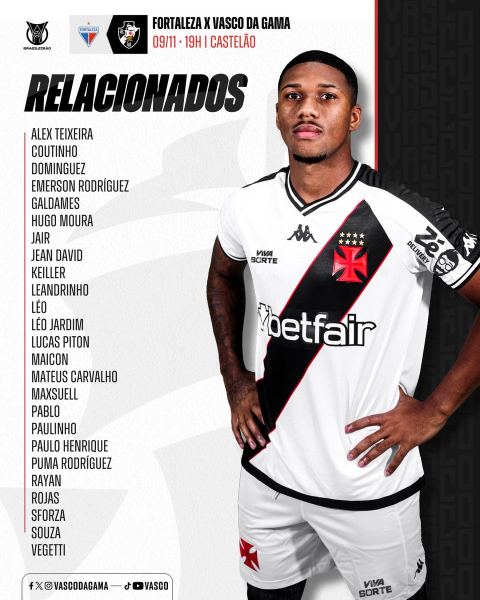 Confira os relacionados do Vasco para o jogo contra o Fortaleza; Payet sente incômodo na coxa e não viaja