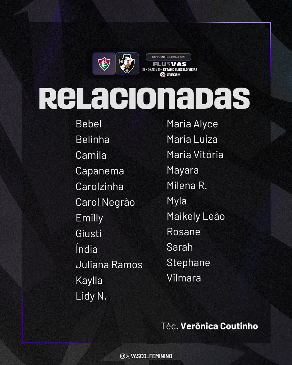Feminino: Confira as jogadoras do Vasco relacionadas para a partida contra o Fluminense