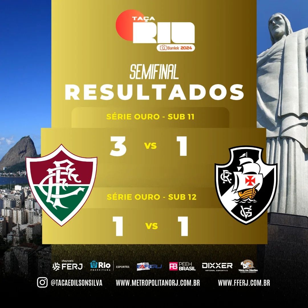 Pela semifinal da Taça Rio, Vasco perde para o Fluminense por 3 a 1 no Sub-11 e empata por 1 a 1 no Sub-12