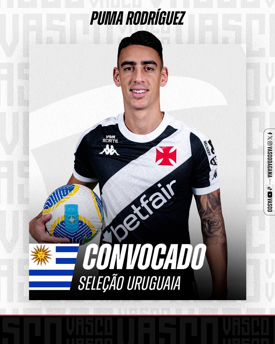 O lateral-direito Puma Rodríguez foi convocado pelo Uruguai e servirá a seleção do seu país nos próximos compromissos válidos pelas Eliminatórias da Copa do Mundo 2026.