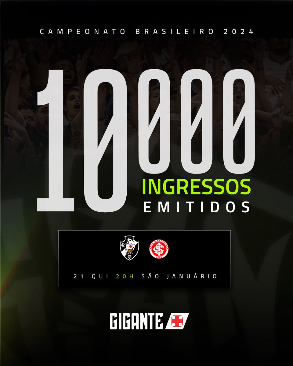 Já foram emitidos 10 mil ingressos para Vasco x Ínternacional