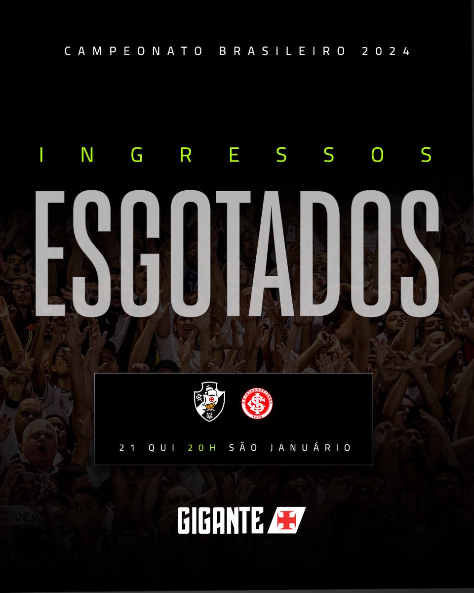 INGRESSOS PARA VASCO X INTERNACIONAL ESTÃO ESGOTADOS