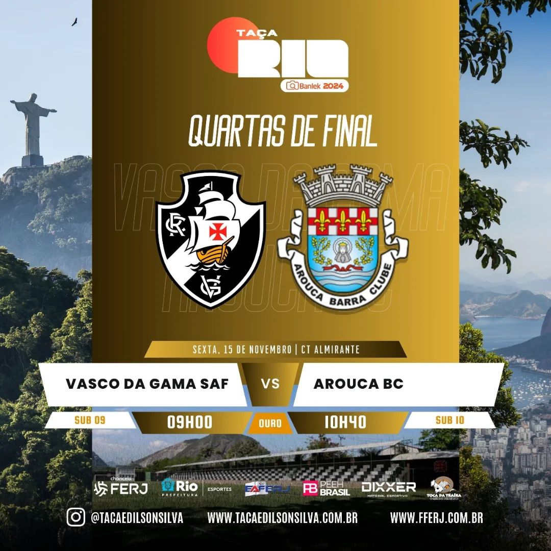Vasco recebe o Arouca no Sub-09 e no Sub-10 nesta 6ª-feira pelas quartas da Taça Rio