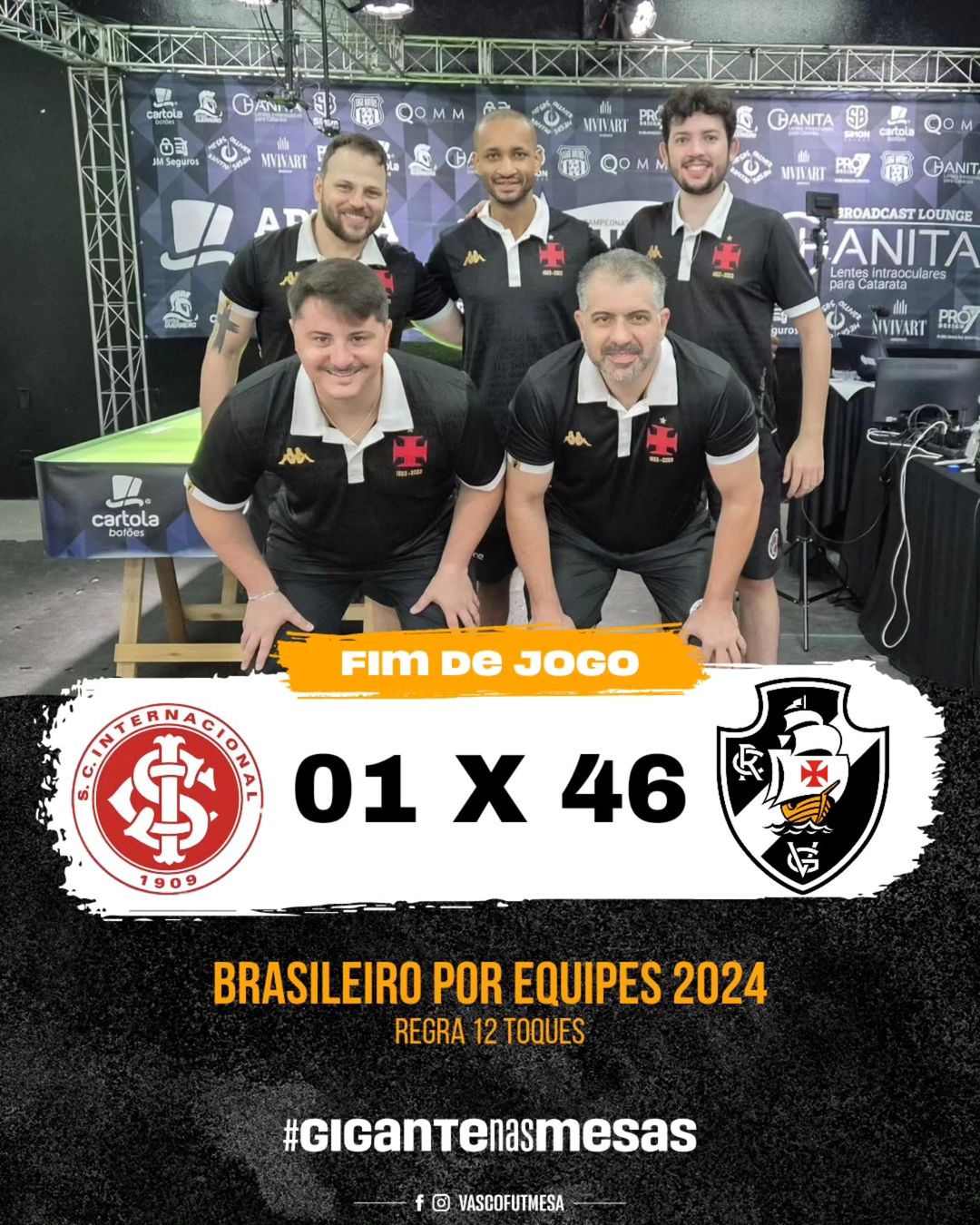 Pela 4ª rodada do Campeonato Brasileiro Interclubes de Futebol de Mesa, Regra 12 Toques, o Vasco venceu o Inter RS.