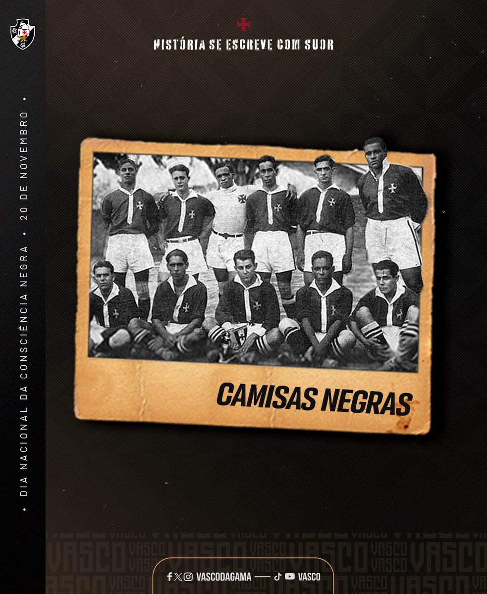 No Dia da Consciência Negra, Vasco homenageia os Camisas Negras; veja postagem