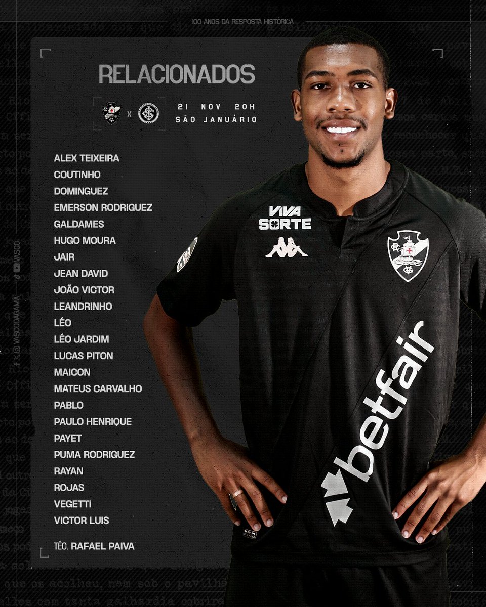 📋 Relacionados para o confronto com o Internacional em São Januário! 💢