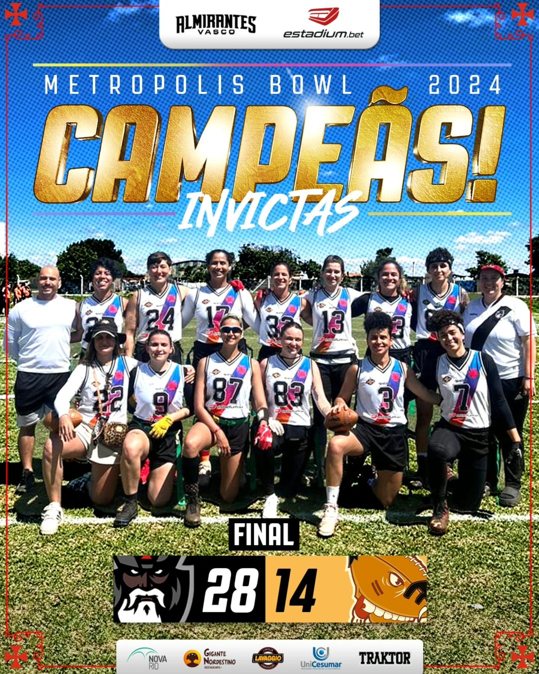 As meninas do Vasco Almirantes mostraram sua dominância desde o início da partida e conseguiram a vitória por 28 a 14 sobre o Cannibals e garantiram o título!